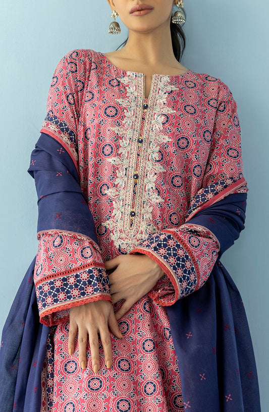 Stitched 3 Piece Printed Embroidered Lawn Shirt , Cambric Pant and Lawn Dupatta (OTL-24-020/S RED)
