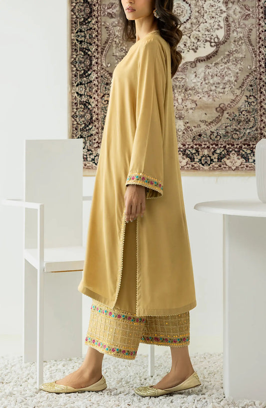 - DYED EMBROIDERED CAMBRIC SHIRT WITH FRONT EMBROIDERY DETAILS AND EMBELLISHMENT ON SLEEVES