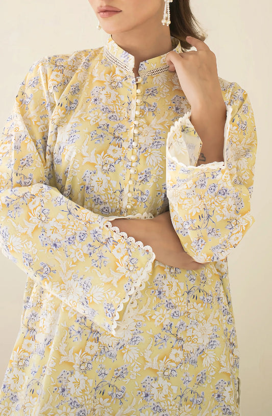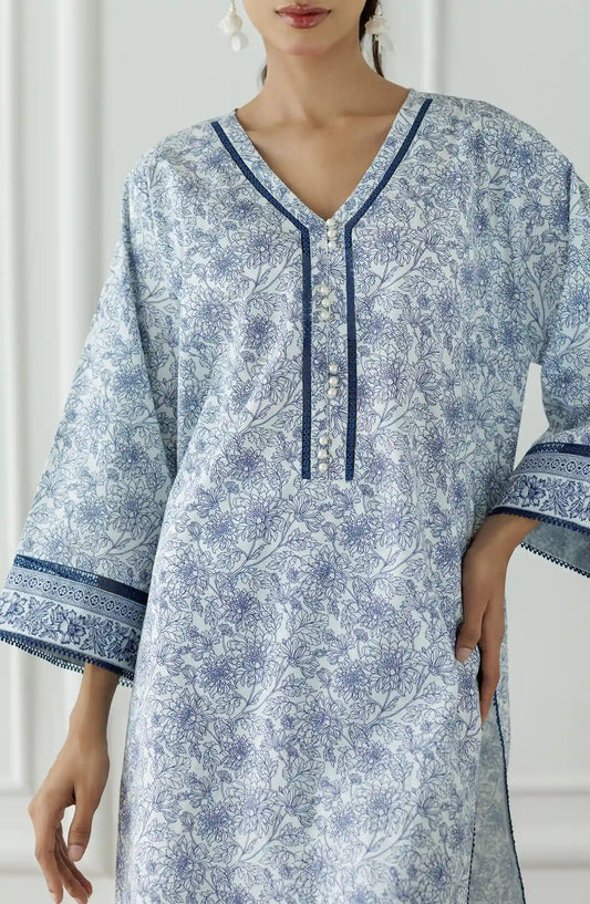 - Straight Cut Printed Pencil Slack Style Trouser with Laces Detail